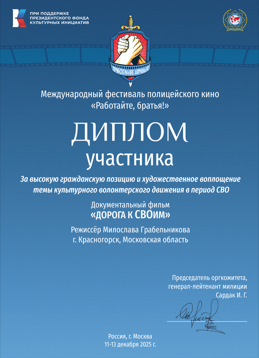 18. Участник Международного фестиваля полицейского кино «Работайте, братья!» 2025