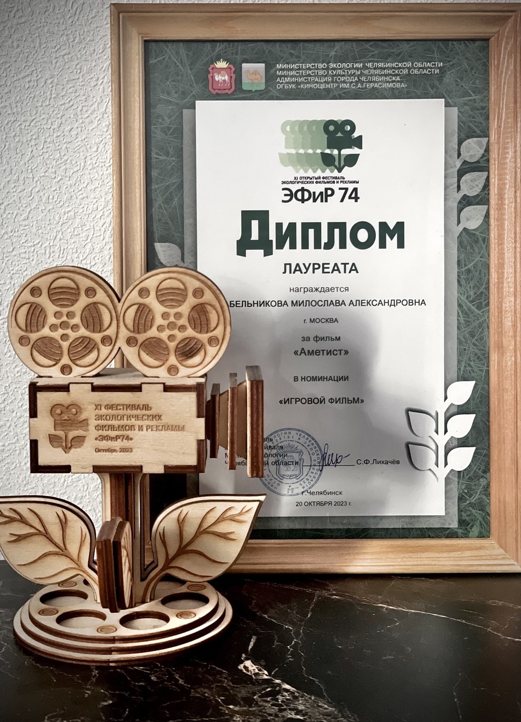 5. Победитель XI фестиваля экологических фильмов и рекламы "ЭФиР 74" в номинации "Игровой фильм" (К/м фильм "Аметист") 2023 г.